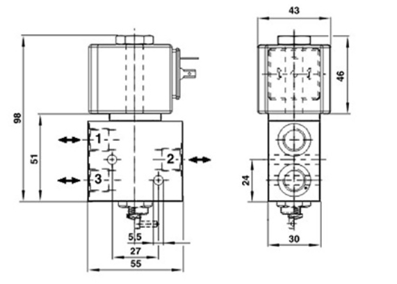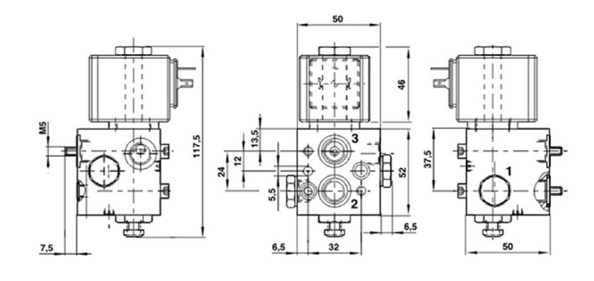 | Solenoid valve with threaded connection | Solenoid valve with NAMUR interface |