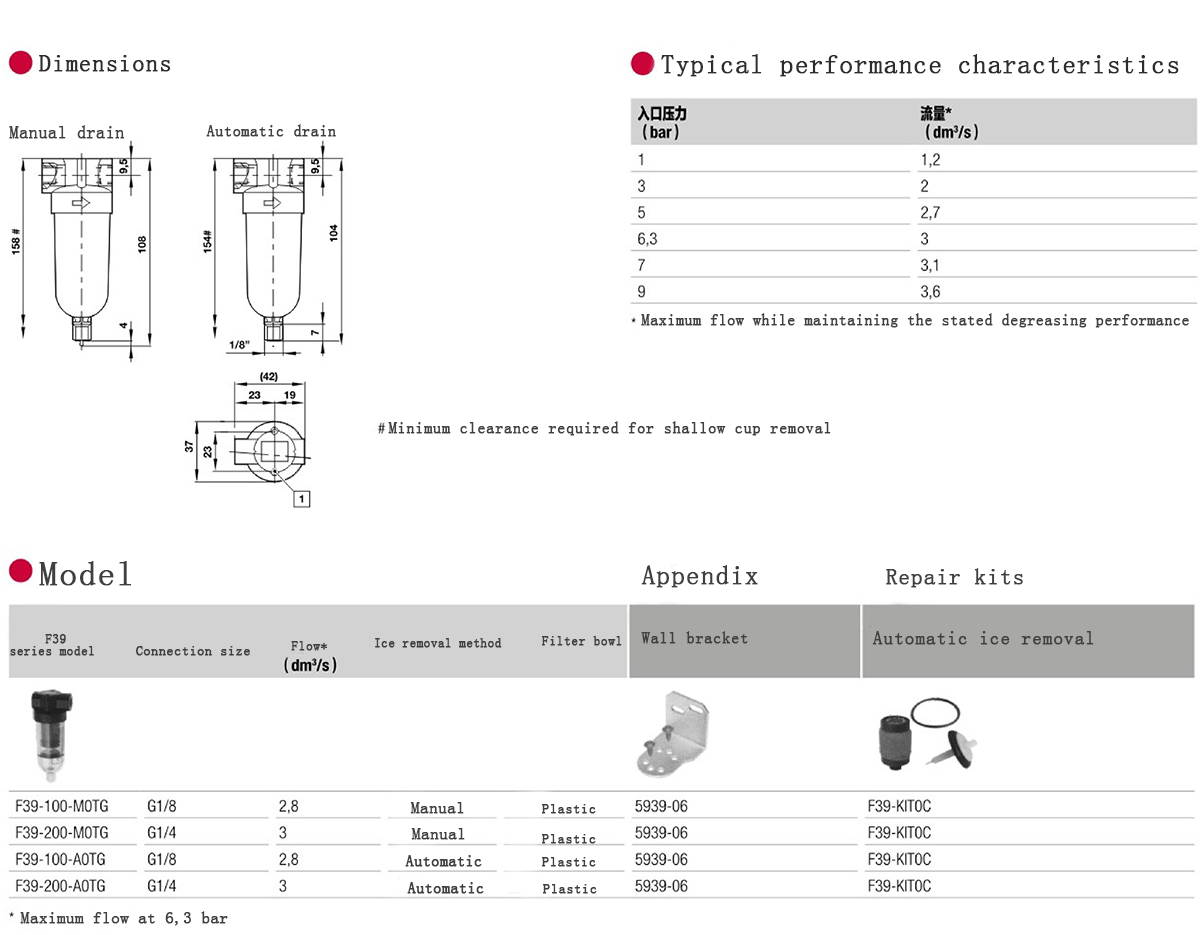 Note: Install an F07 filter with a 5mm filter element upstream of the F39 filter |