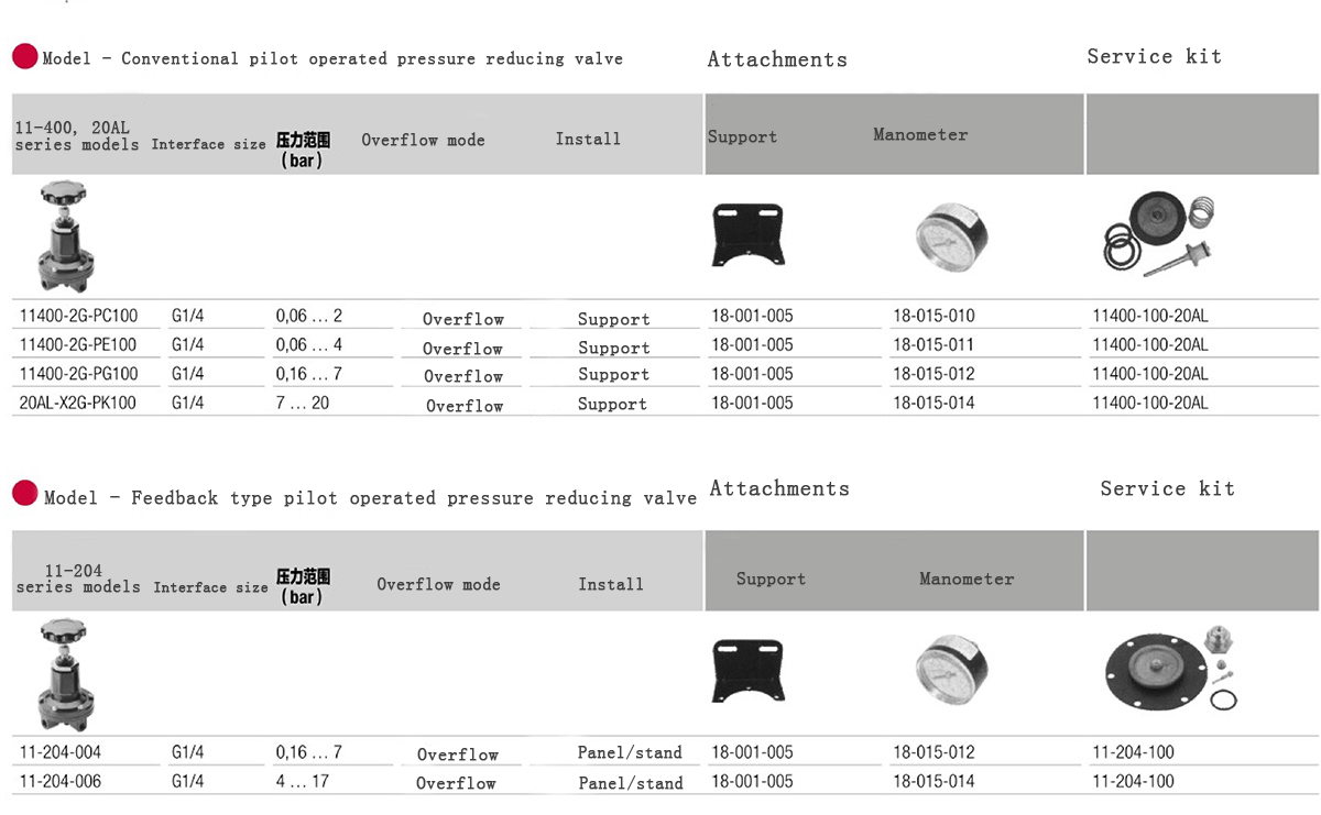 · Pilot operated pressure reducing valve can be installed in compressed air